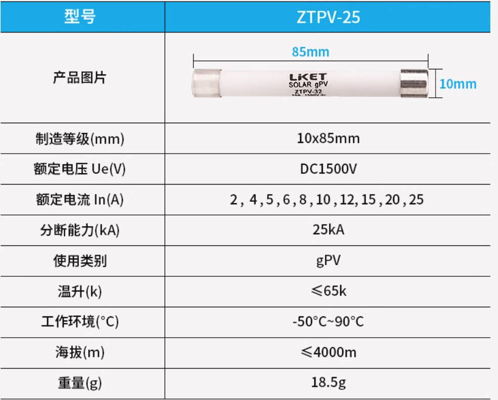 LKET DC1500V 10*85MM 2A 7011552.2 Sicherungen (12 Stück)