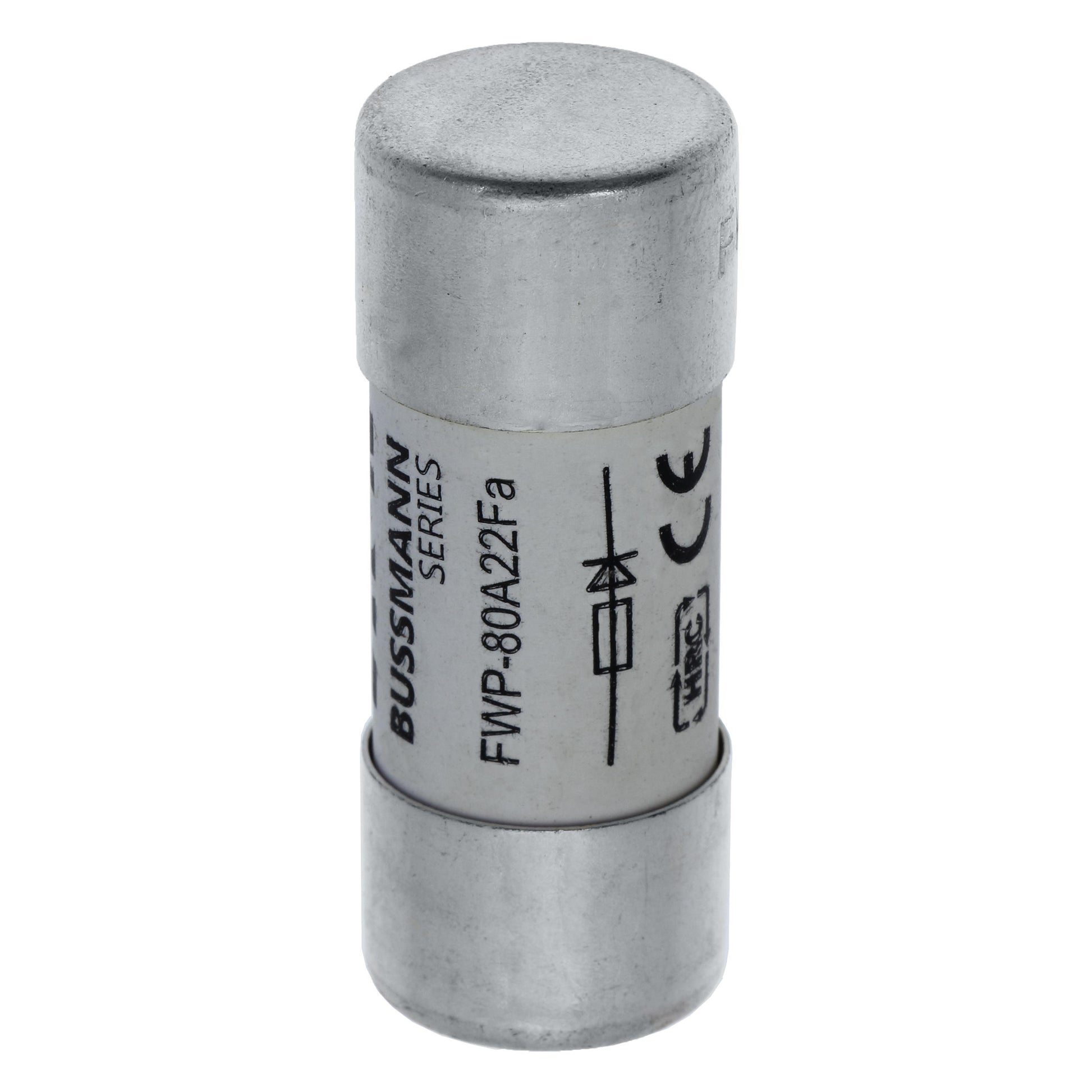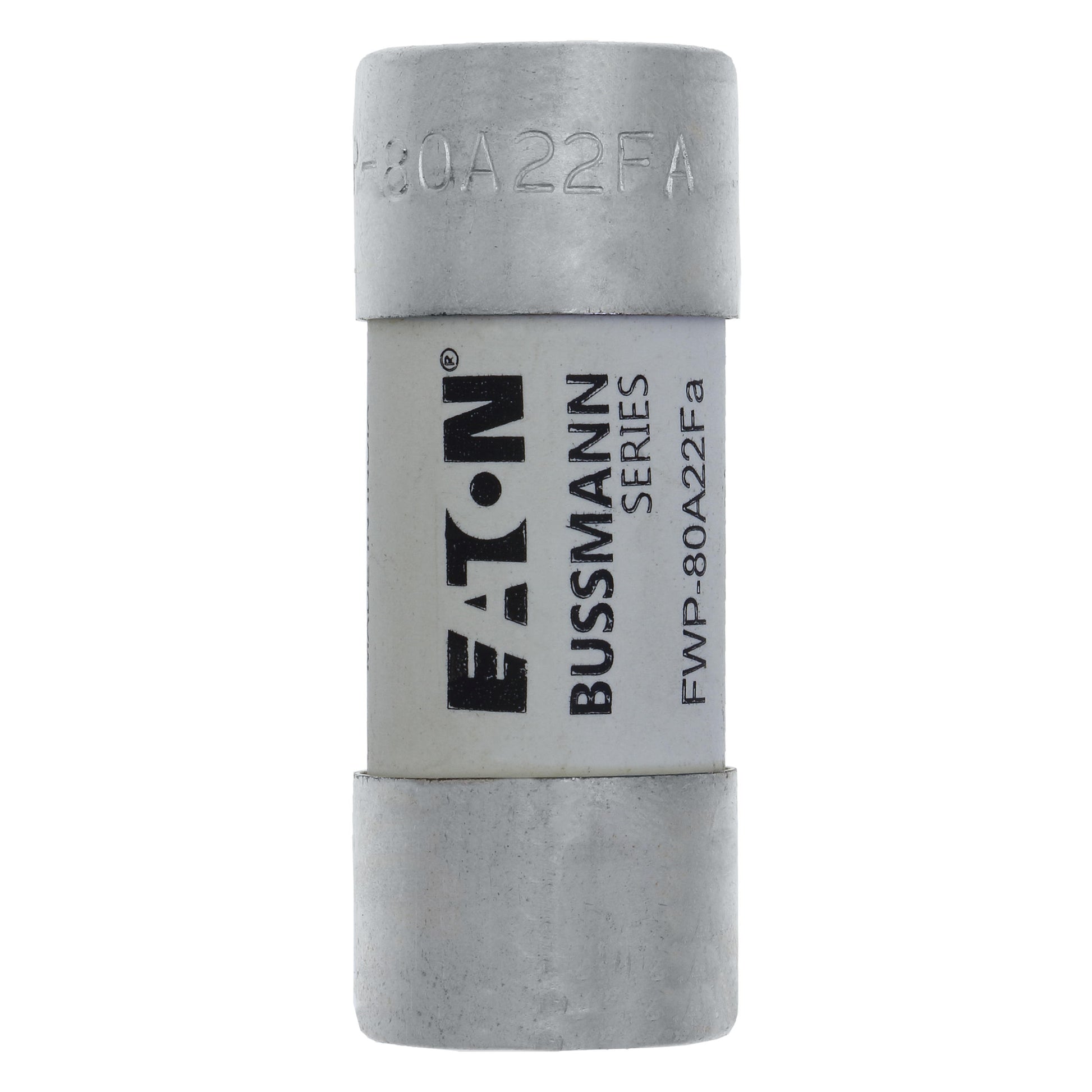 Este paquete de 10 fusibles EATON FWP-80A22F utiliza una conexión de extremo de virola X. Este fusible está diseñado con una clasificación de 200 kAIC a 300 V CC y ofrece una clasificación de 50 kAIC a 300 V CC. Clase aR y clasificación UL a 700 Vca y 700 Vcc.